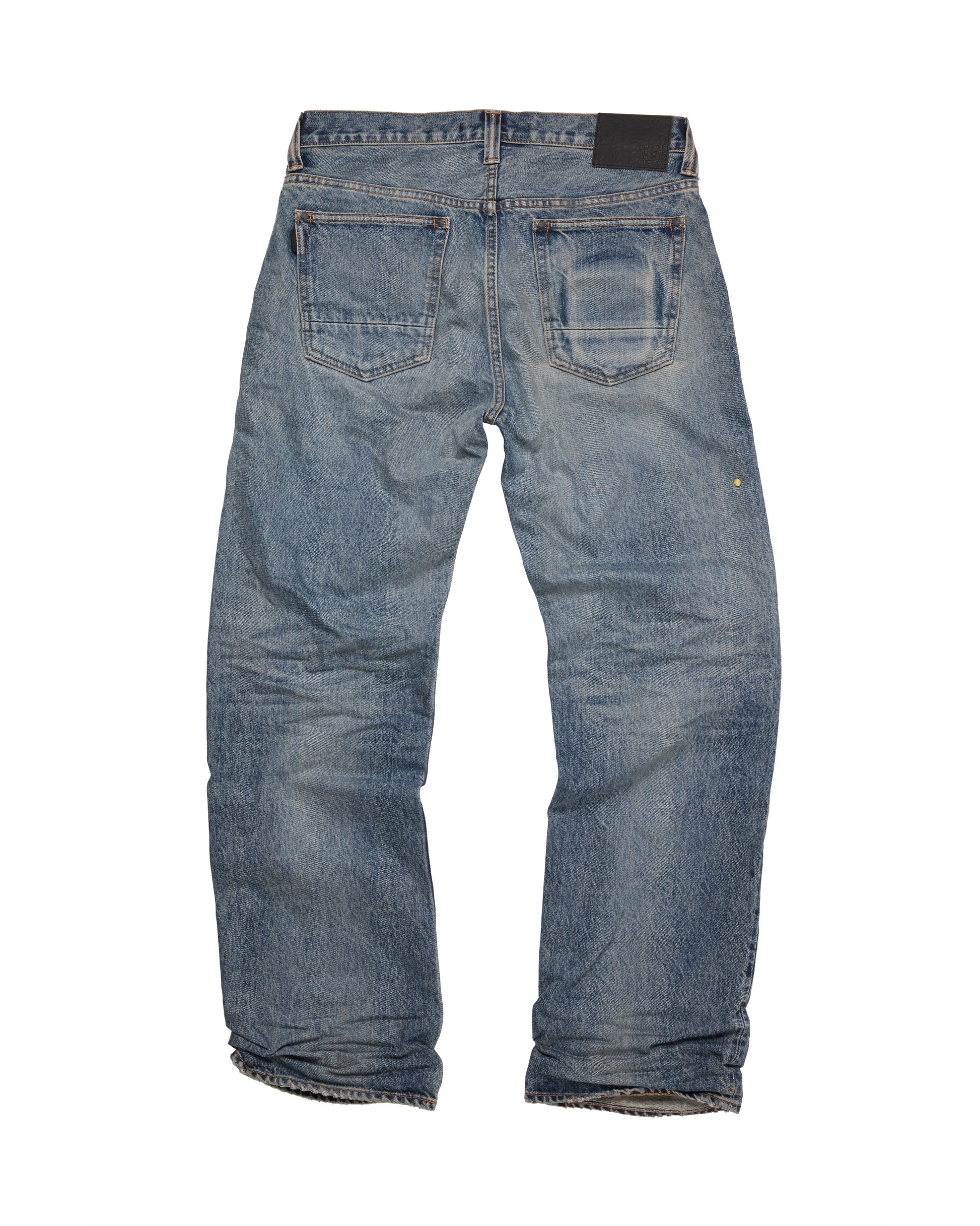 This light blue, handcrafted wash features an authentically aged and 3D finish, giving it a well-worn, vintage feel. The embroidered gold circle on the wearer's thigh is a mid 20th century vintage workwear detail, but it is a nod to Japans circle of the sun, symbolised in red on the Japanese flag. For MCU, it represents 100% made in Japan artisanal jean.